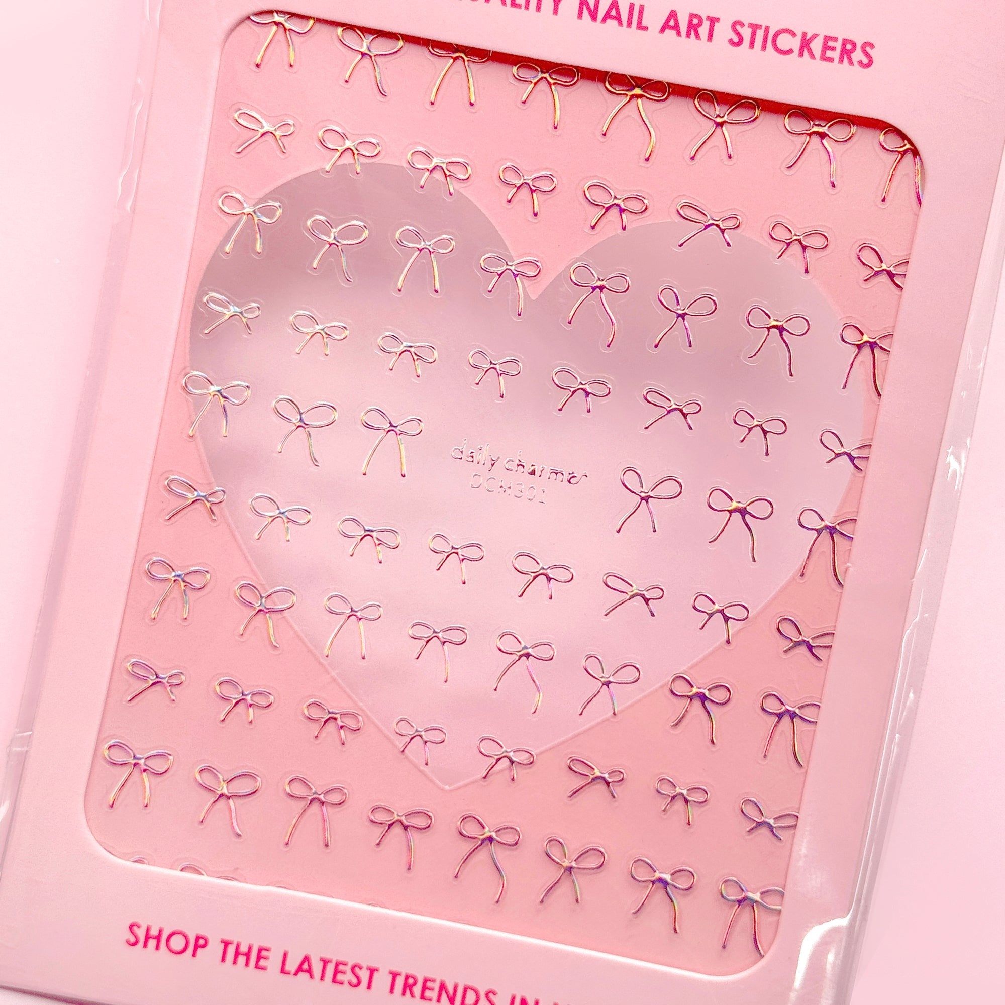 Daily Charme – Kawaii Nail Art Sticker – Coquette Bows – Holographic Pink