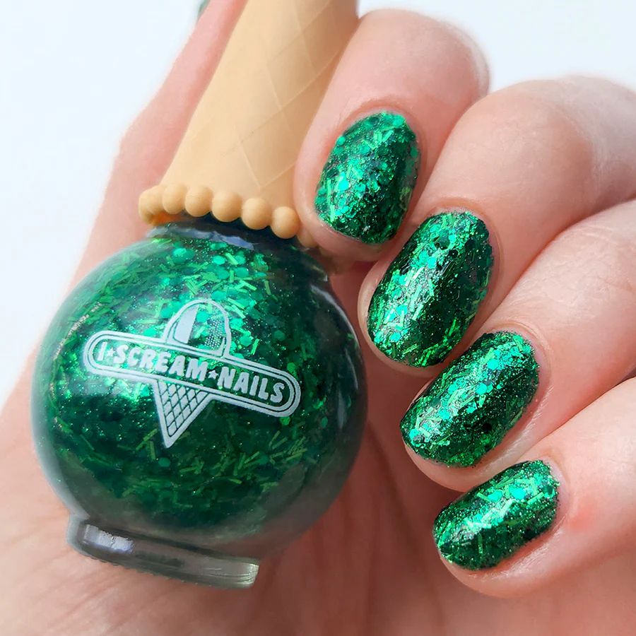 Meet the ultimate holiday vibe in a bottle! This glittery green is packed with sparkle, perfect for adding a little extra glam to every celebration. Its playful, its twinkling, and its ready to make your nails the life of the party
