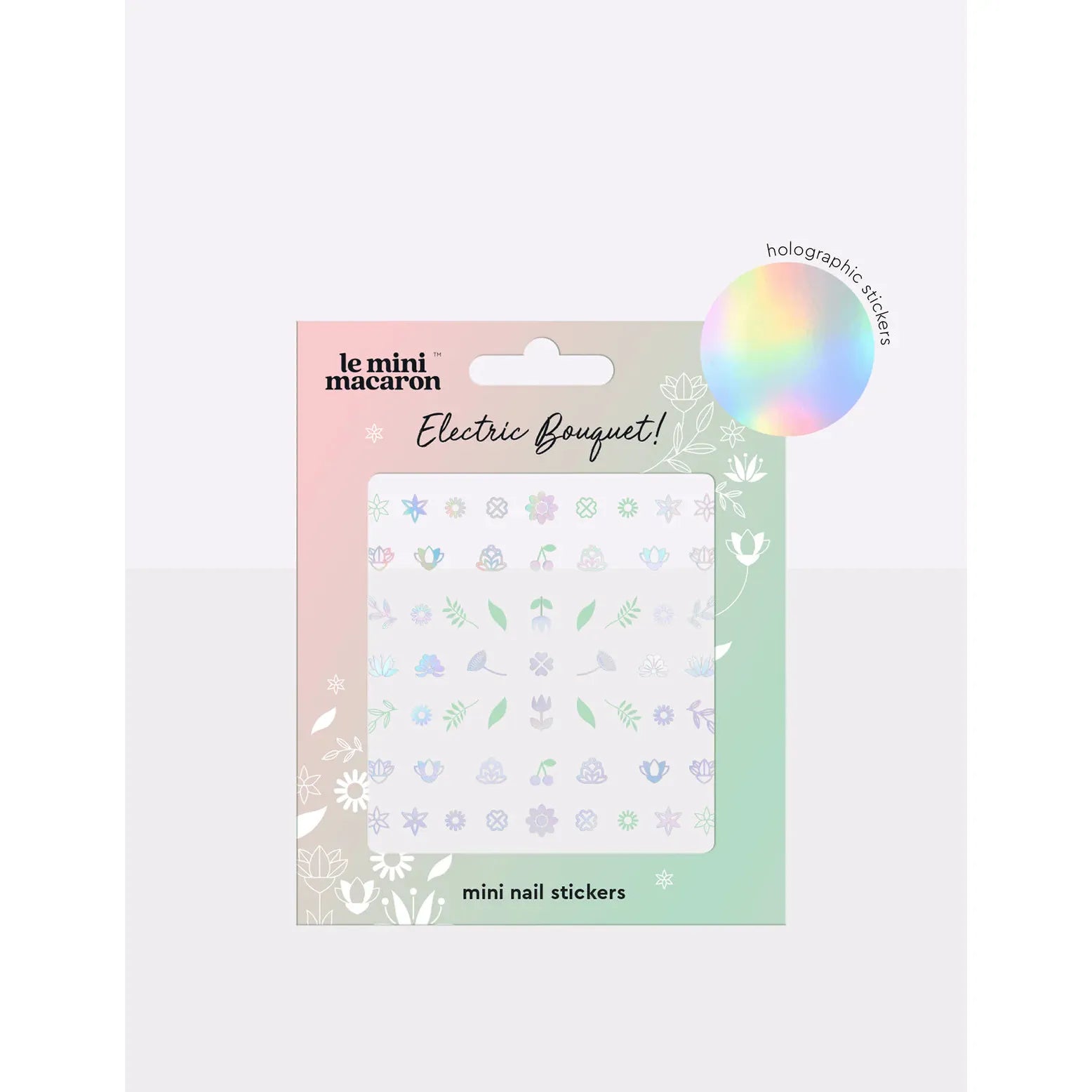 Bring the flower power look to your mani with our Electric Bouquet mini nail stickers! The holographic finish gives these floral nail stickers an iridescent glow. Perfect for festival season and all your summertime soriées!