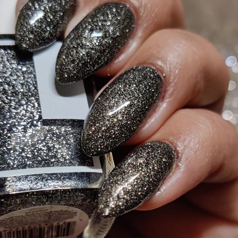 We landed on the naughty list making this color. Interrupted coal being made into diamonds and made a polish with what we found, deep charcoal with glistening diamond glitters. Just like the coal we started with we too shine brighter under pressure.