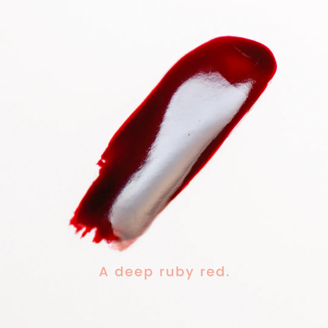 This is a deep, maroon, ruby red gel nail color. Everyone needs that deep dark red gel nail color in their collection because truly you can’t have enough of them! Some of them are more warm, some are more cool, but this one specifically is on the warmer jewel toned end of the spectrum. This color is perfect for those who love a red nail but want to change it up to be more subtle and vampy! This is a great neutral color for all year round.
