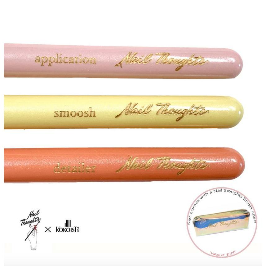 The Nail Thoughts three piece brush kit includes.
