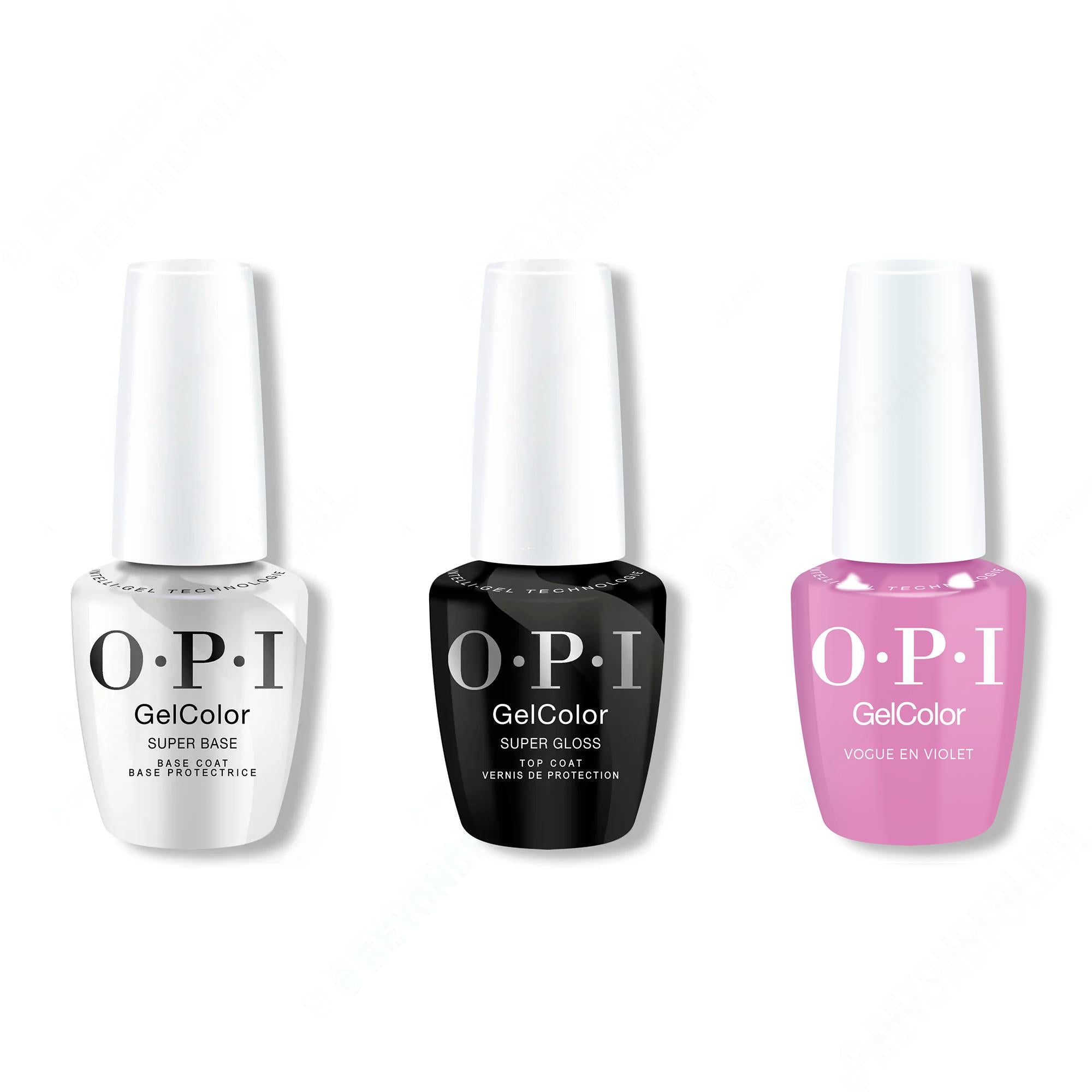 OPI GelColor Intelli-Gel Combo – Super Base Coat, Super Gloss Top Coat & Vogue en Violet